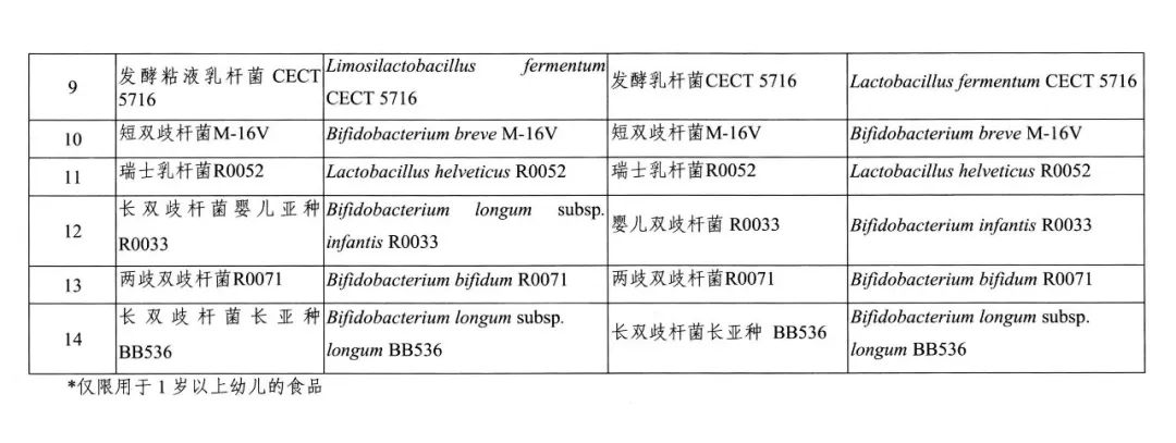 (二)根據(jù)國際有關(guān)菌種分類地位的變化情況,《可用于食品的菌種名單》及《可用于嬰幼兒食品的菌種名單》中12個菌種更新為不同種屬。