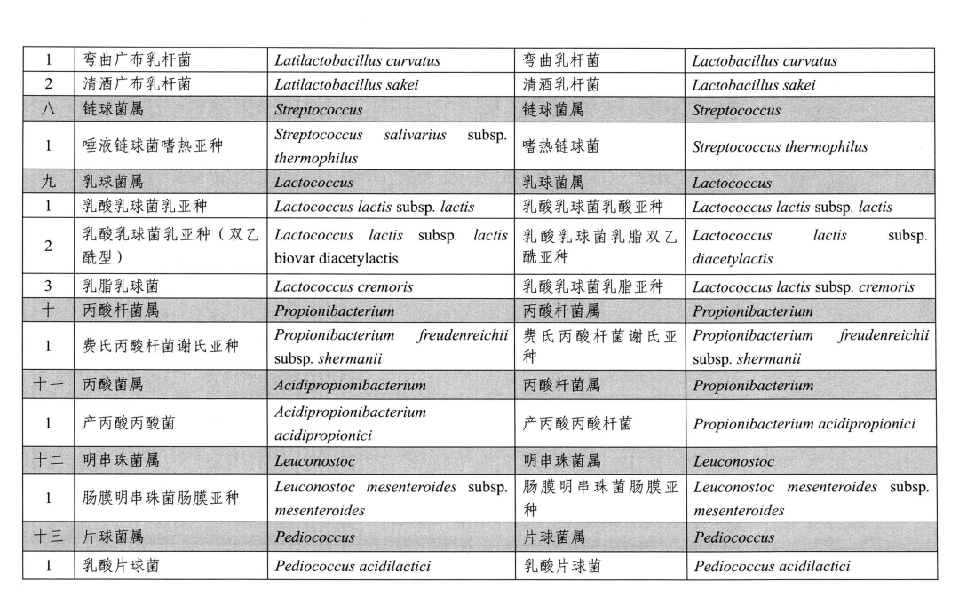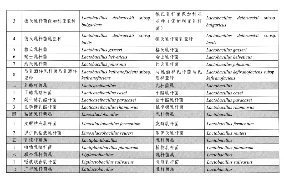 (二)根據(jù)國際有關(guān)菌種分類地位的變化情況,《可用于食品的菌種名單》及《可用于嬰幼兒食品的菌種名單》中12個菌種更新為不同種屬。