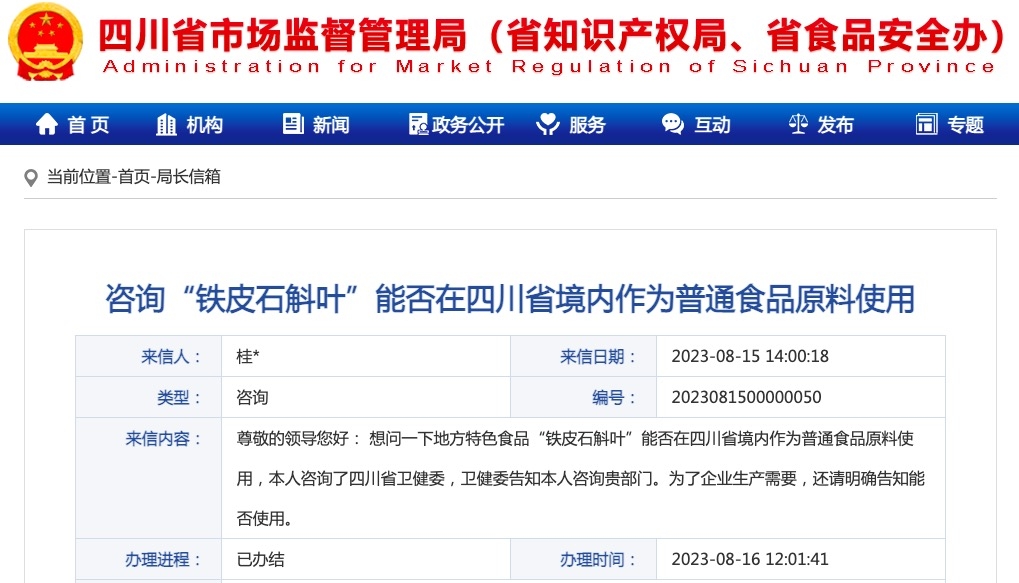 2021年,《四川省開展天麻、鐵皮石斛、靈芝按照傳統(tǒng)既是食品又是中藥材的物質(zhì)管理試點方案》經(jīng)省政府同意,并報國家衛(wèi)生健康委、國家市場監(jiān)管總局核定,決定在四川省內(nèi)開展為期一年的天麻、鐵皮石斛、靈芝三種物質(zhì)按照傳統(tǒng)既是食品又是中藥材的物質(zhì)管理試點工作。產(chǎn)品范圍:在全省行政區(qū)域內(nèi)(包括省外種植基地)種植以天麻、鐵皮石斛、靈芝為原材料,按照傳統(tǒng)生產(chǎn)工藝或飲食習慣食用加工的普通食品,不包括化學提取物產(chǎn)品(如含某種物質(zhì)提取素的藥品、保健食品)。試點產(chǎn)品須按“食品生產(chǎn)許可分類目錄”取得相關(guān)品種生產(chǎn)許可后方可從事生產(chǎn)加工。目前試點工作已結(jié)束。經(jīng)查詢,鐵皮石斛葉已終止審查,衛(wèi)生行政部門建議按照《食品安全法》第29條管理。